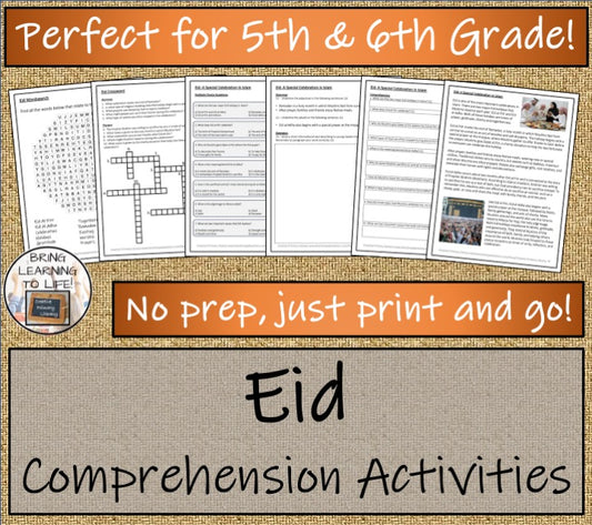 Eid Close Reading Comprehension Activities | 5th Grade & 6th Grade