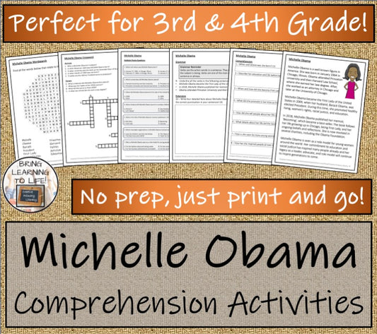 Michelle Obama Close Reading Comprehension Activities | 3rd Grade & 4th Grade
