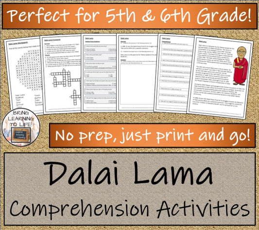 Dalai Lama Close Reading Comprehension Activities | 5th Grade & 6th Grade