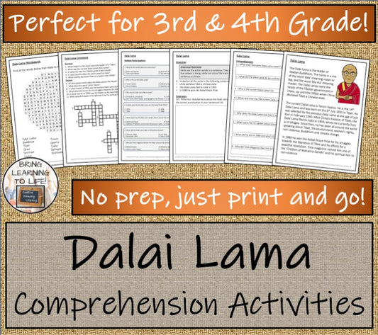 Dalai Lama Close Reading Comprehension Activity | 3rd Grade & 4th Grade
