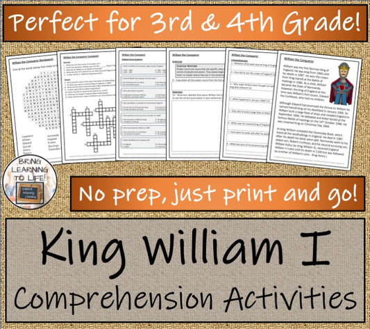 William the Conqueror Close Reading Comprehension Activities | 3rd & 4th Grade