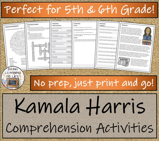 Kamala Harris Close Reading Comprehension Activities | 5th Grade & 6th Grade