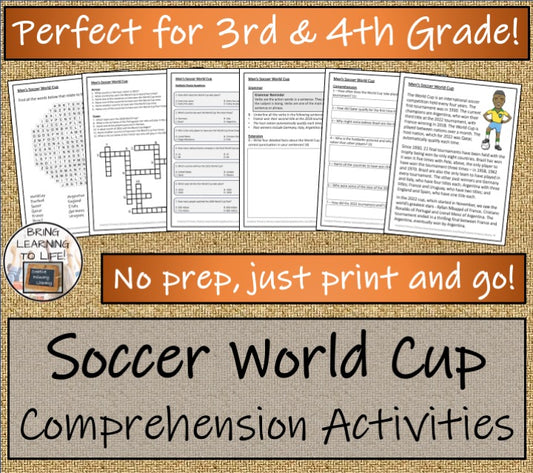 Soccer World Cup Close Reading Comprehension Activities | 3rd Grade & 4th Grade