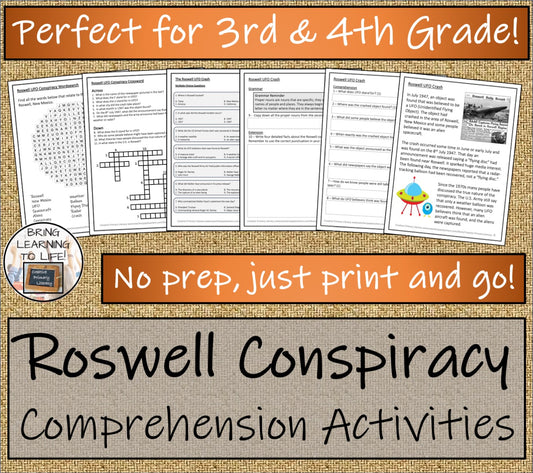 Roswell UFO Conspiracy Close Reading Comprehension Activities | 3rd & 4th Grade