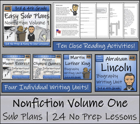 Emergency Sub Plans | Non-Fiction Volume One | | 3rd Grade & 4th Grade