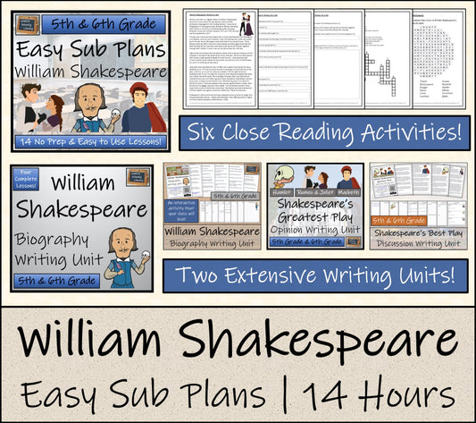 Emergency Sub Plans | William Shakespeare Bundle | 5th Grade & 6th Grade