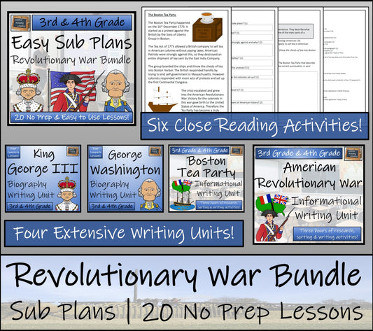 Emergency Sub Plans | American Revolutionary War Bundle | 3rd Grade & 4th Grade
