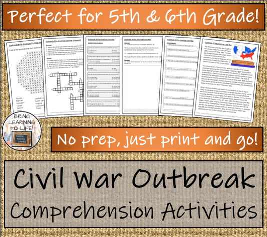 Outbreak of American Civil War Close Reading Comprehension | 5th & 6th Grade