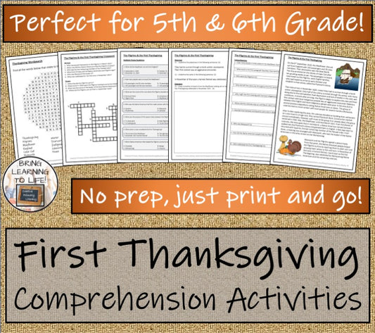 The Pilgrims & First Thanksgiving Close Reading Comprehension | 5th & 6th Grade