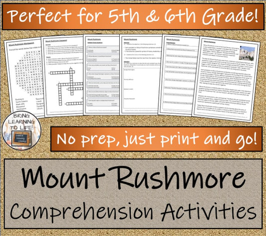Mount Rushmore Close Reading Comprehension Activities | 5th Grade & 6th Grade