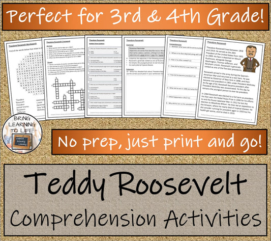 Theodore Roosevelt Close Reading Comprehension Activities | 3rd Grade & 4th Grade