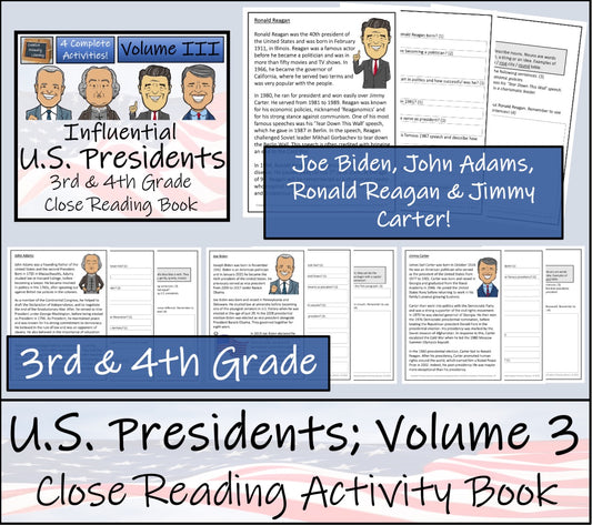 American Presidents Volume 3 Close Reading Comprehension Book | 3rd & 4th Grade