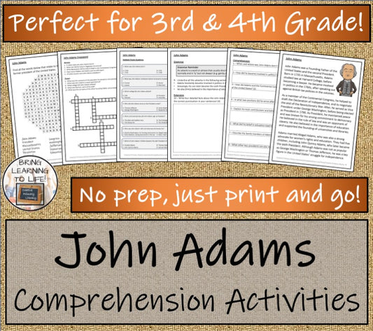 John Adams Close Reading Comprehension Activities | 3rd Grade & 4th Grade
