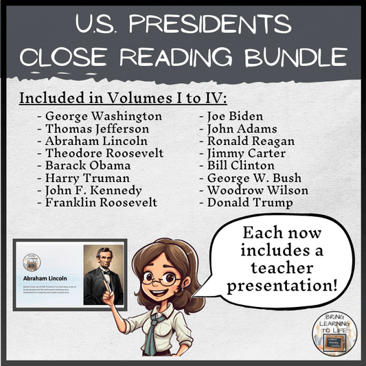 American Presidents Close Reading Comprehension Mega Bundle | 3rd-4th Grade
