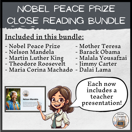 Nobel Peace Prize & Winners Close Reading Comprehension Bundle | 3rd & 4th Grade