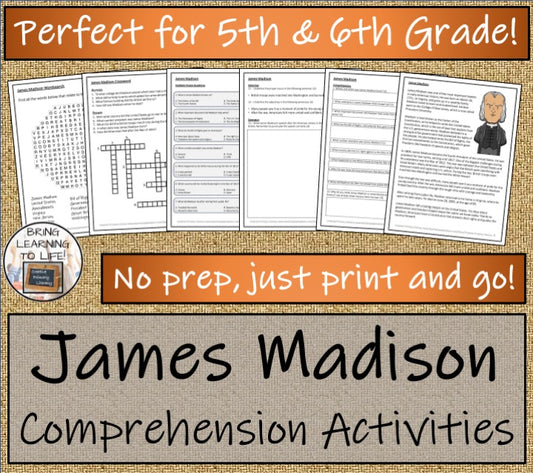 James Madison Close Reading Comprehension Activities | 5th Grade & 6th Grade