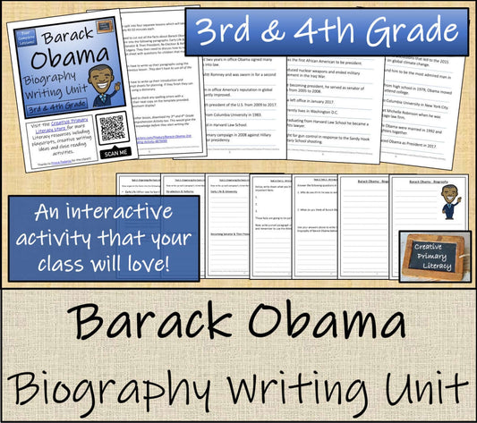 Barack Obama Biography Project & Writing Unit | 3rd Grade & 4th Grade