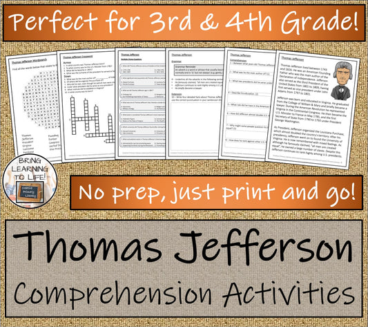 Thomas Jefferson Close Reading Comprehension Activities | 3rd Grade & 4th Grade