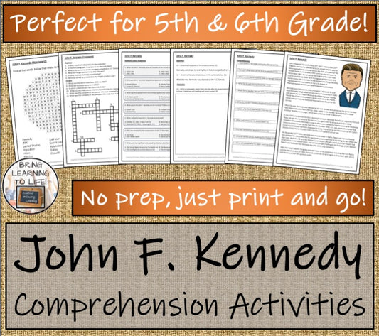 John Kennedy Close Reading Comprehension Activities | 5th Grade & 6th Grade
