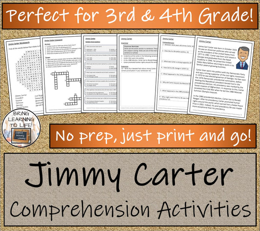 Jimmy Carter Close Reading Comprehension Activities | 3rd Grade & 4th Grade