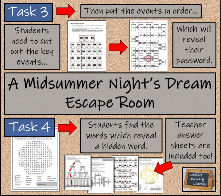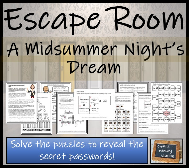 An Escape Room activity about William Shakespeare's famous play - A Midsummer Nights Dream. Ideal for fifth grade or sixth grade, the activity is perfect for group work, starting a new topic, team-building activities or for a fun, engaging and interactive lesson. The activity can be used in English class as it incorporates some ELA skills or in Social Studies.