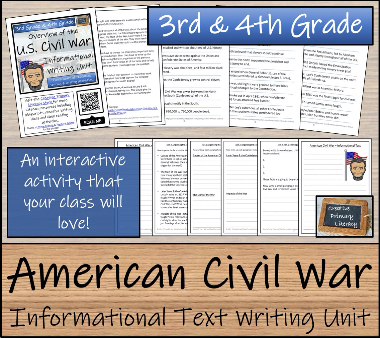 Finally, there is an informational text writing unit. The unit has been split into three separate lessons which will take students approximately 40-50 minutes each. Ideal for students learning about the American Civil War.
