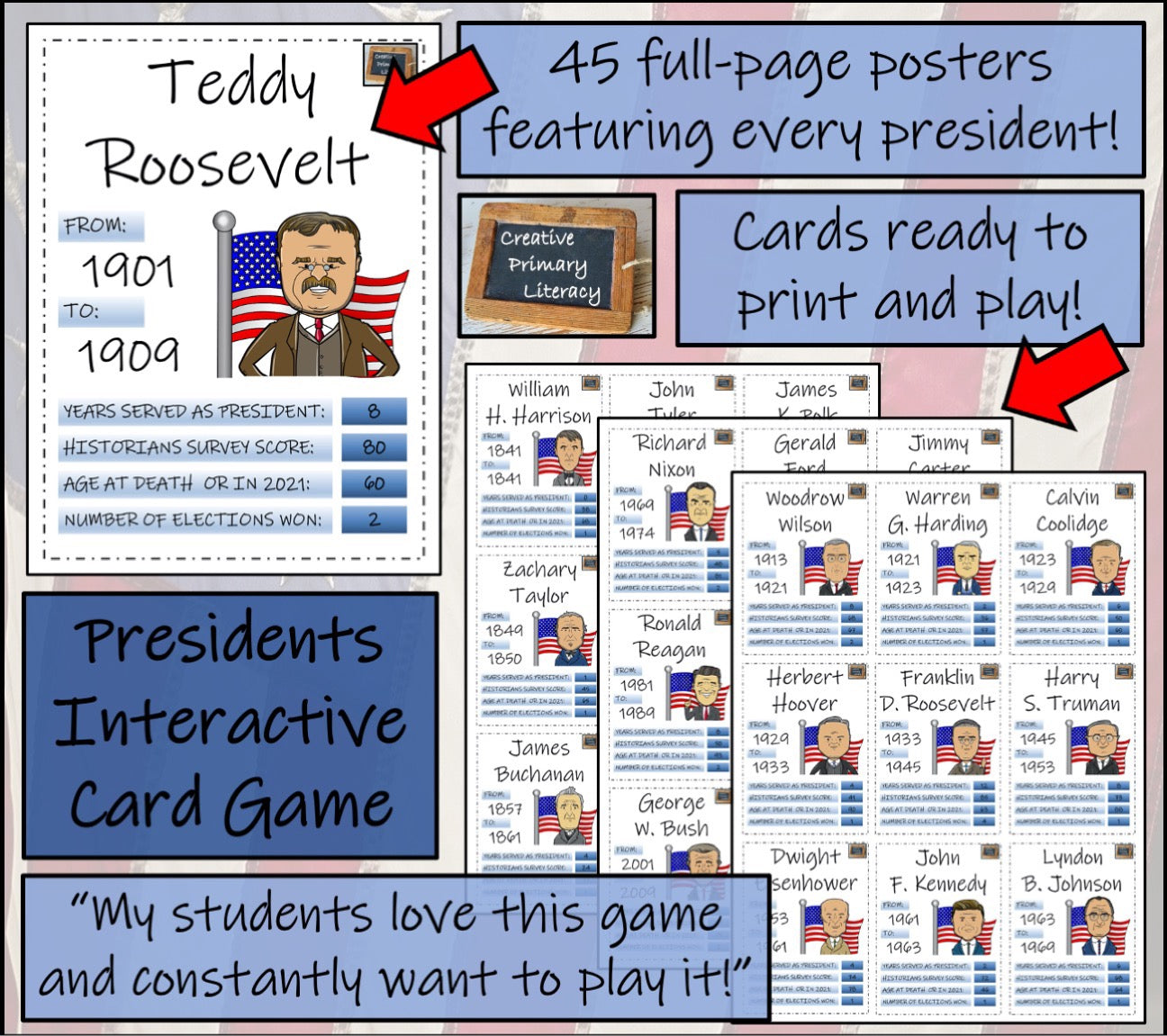 Finally, there is a 'top trumps' style supercards card game that enables your students to learn about all of the American presidents. Your class will love the trading cards which they can play with in an interactive and engaging way!