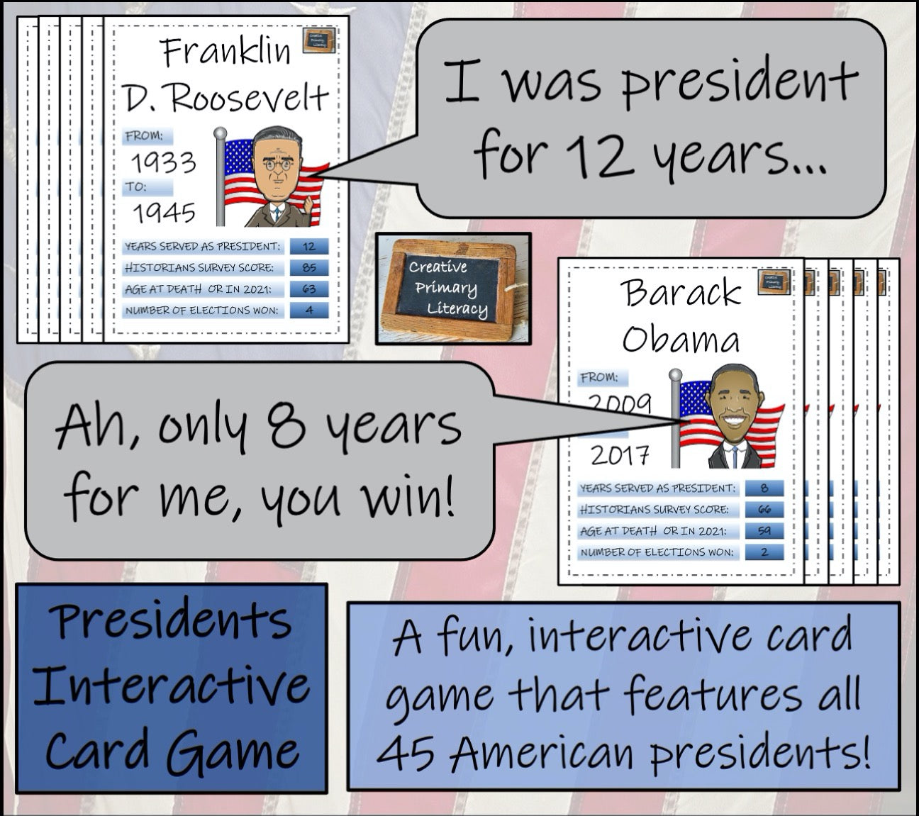 Firstly, a top trumps style card game that enables your students to learn about all of the American presidents in an interactive and engaging way, which your class will love! The game is perfect for introducing students to all of the U.S Presidents throughout history.