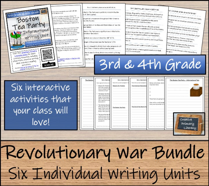 Finally there are two informational text writing units that look into the American War of Independence and the Boston Tea Party. These units have been split into three separate lessons which will take students approximately 40-50 minutes each.