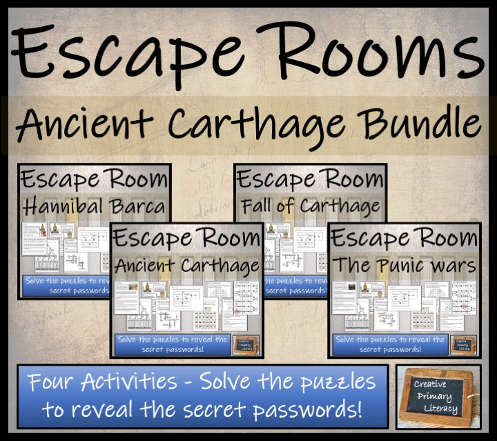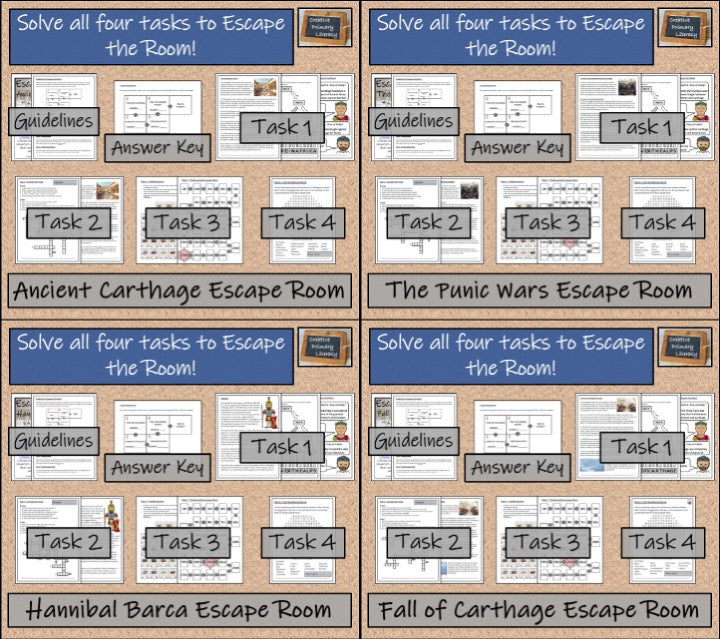 Four individual Ancient Carthaginian Escape Room activities about the following famous figures or periods from history: