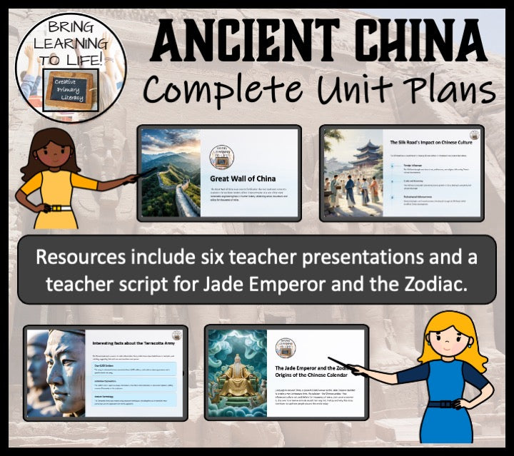 An Ancient China unit of work and bundle of resources for fifth or sixth graders which provides a comprehensive and engaging exploration of ancient historical events and famous figures. The unit and resources take students through some of the main events and key figures from the civilization.