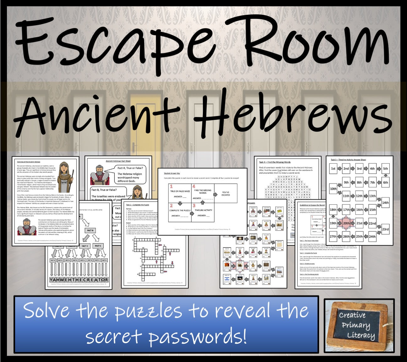 An Ancient Hebrews Escape Room activity. Ideal for fifth grade or sixth grade, the activity is perfect for group work, starting a new ancient history topic, team-building activities or for a fun, engaging and interactive lesson. The activity can be used in English class as it incorporates some ELA skills or in Social Studies.