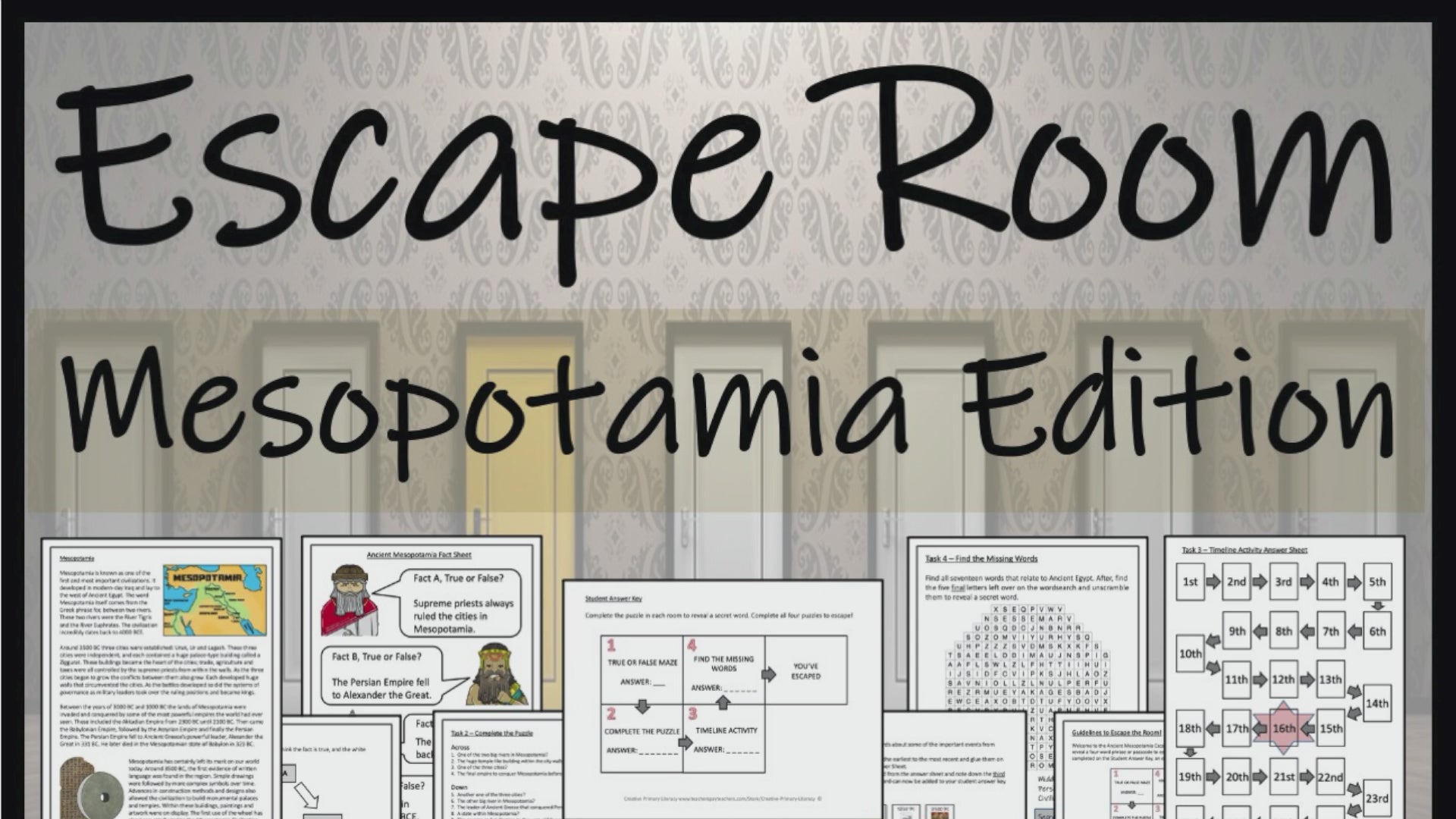 An Ancient Mesopotamia Escape Room activity. Ideal for fifth grade or sixth grade, the activity is perfect for group work, starting a new ancient history topic, team-building activities or for a fun, engaging and interactive lesson. The activity can be used in English class as it incorporates some ELA skills or in Social Studies.