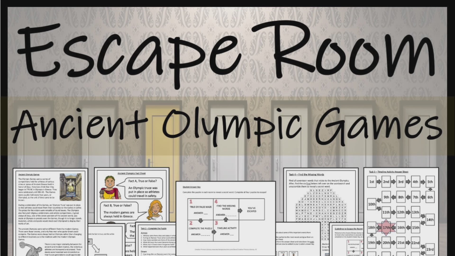 An Ancient Olympic Games Escape Room activity. Ideal for fifth grade or sixth grade, the activity is perfect for group work, starting a new ancient history topic, team-building activities or for a fun, engaging and interactive lesson. The activity can be used in English class as it incorporates some ELA skills or in Social Studies.