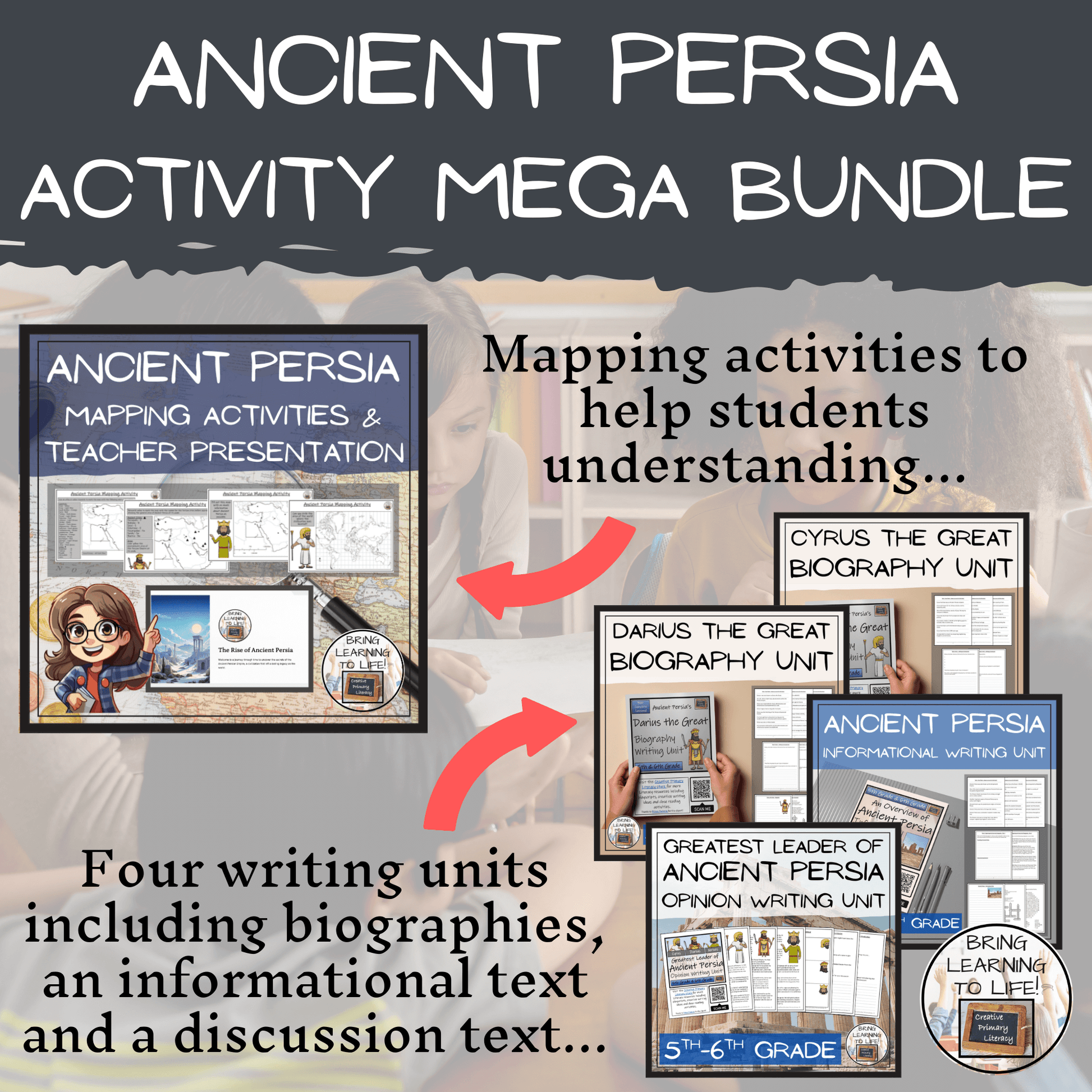 This bundle contains six close reading activities about key events from Ancient Persia and influential people from the era; a timeline display or sorting activity; two biography writing units about Cyrus the Great and Darius the Great; an informational writing unit about Ancient Persia; an opinion writing unit discussing the most important figure from the period; and two escape room activities to enhance your students knowledge even further.