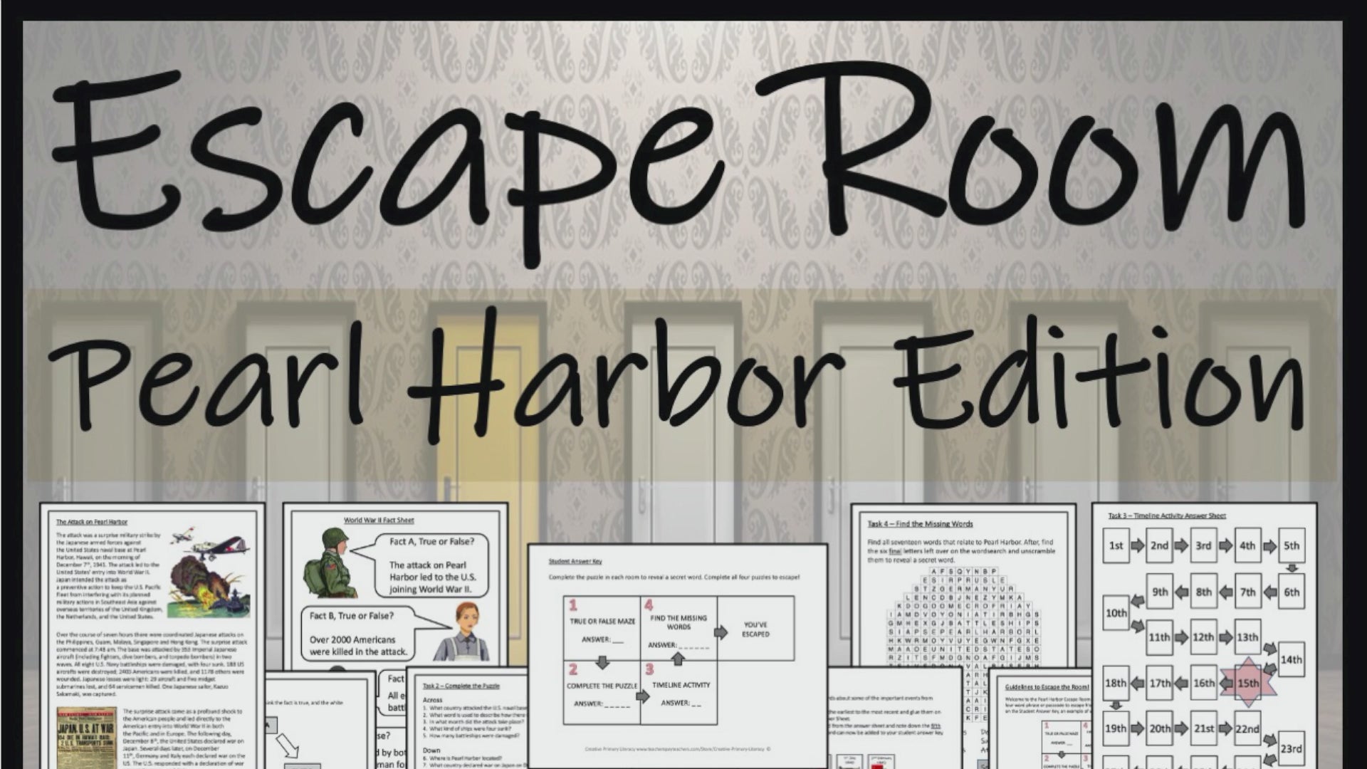 A Pearl Harbor Escape Room activity. Ideal for fifth grade or sixth grade, the activity is perfect for group work, starting a new World War II topic, team-building activities or for a fun, engaging and interactive lesson. The activity can be used in English class as it incorporates some ELA skills or in Social Studies.