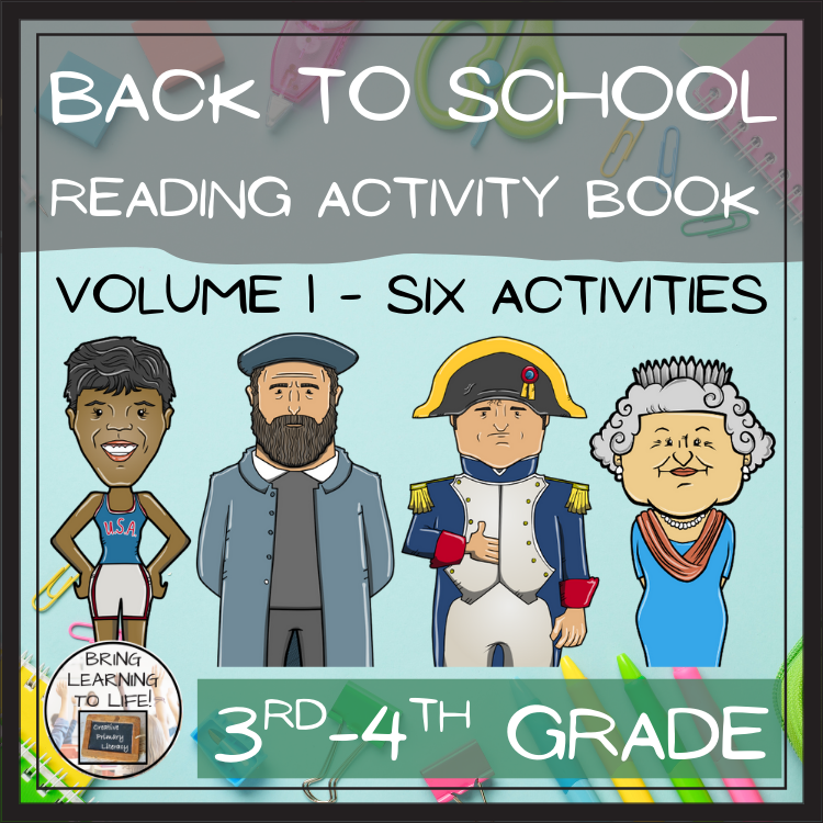 A back to school close reading activity book with six activities. Each activity has an informational text with comprehension and grammar questions followed by an extension task, crossword puzzle and wordsearch activity. The NO PREP reading comprehension activities are perfect for students in third grade or fourth grade. Students will learn about world history whilst developing their comprehension skills.