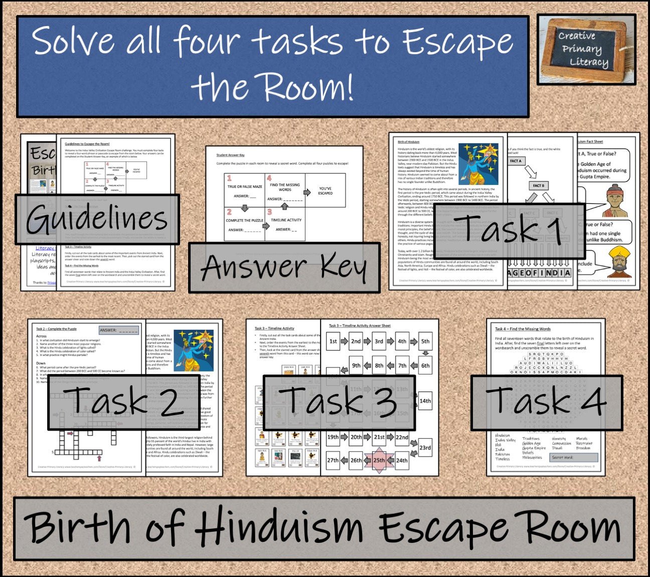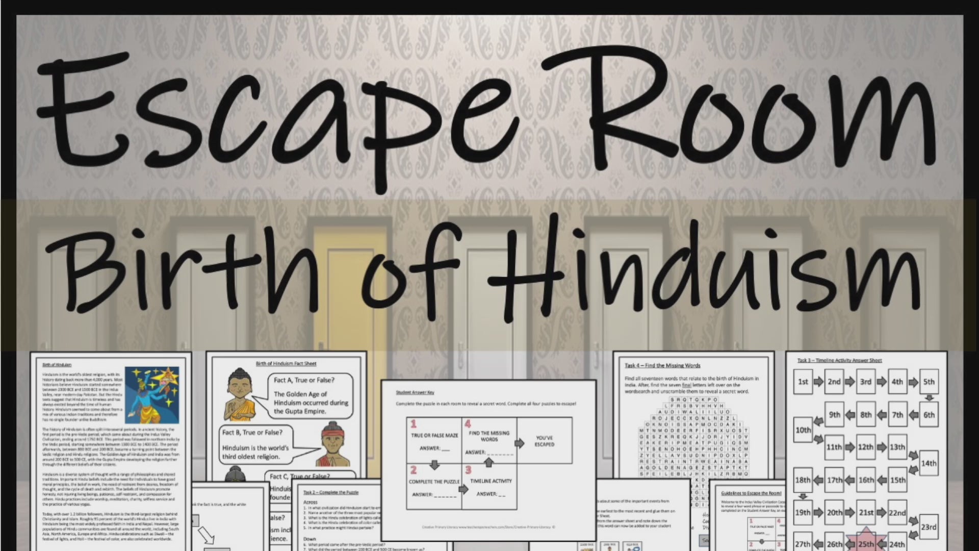An Ancient India Escape Room activity about the birth of Hinduism in the region. Ideal for fifth grade or sixth grade, the activity is perfect for group work, starting a new ancient history topic, team-building activities or for a fun, engaging and interactive lesson. The activity can be used in English class as it incorporates some ELA skills or in Social Studies.