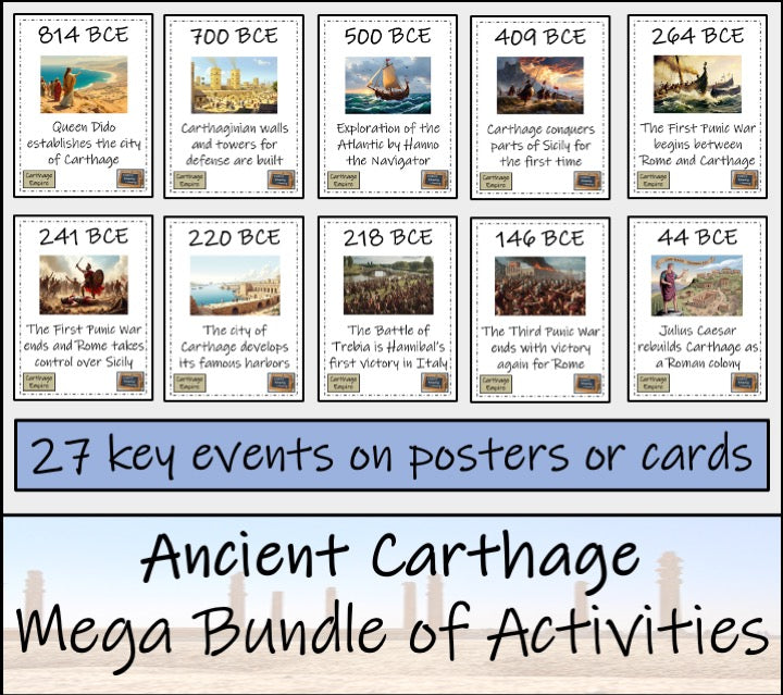 Finally, there is a Carthage Empire Timeline Activity and Display. It is perfect for introducing students to the some of the key events and people of the period. There are 27 posters or task cards that include many of the key events from the era.