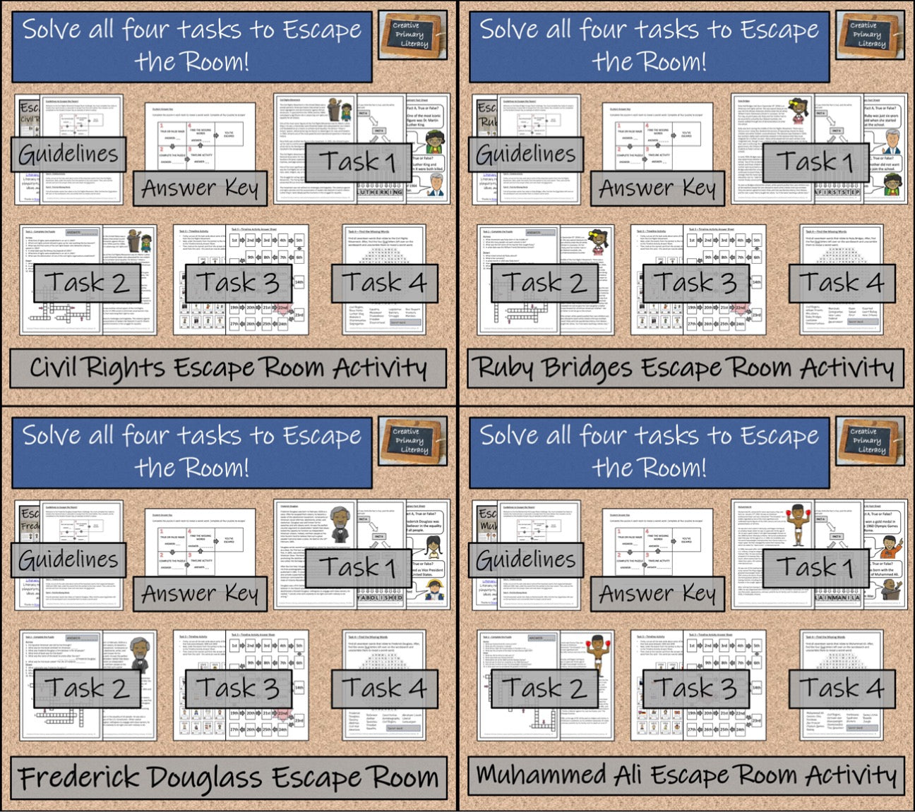Four more individual Escape Room activities about the following famous figures from civil rights movements around the world:
