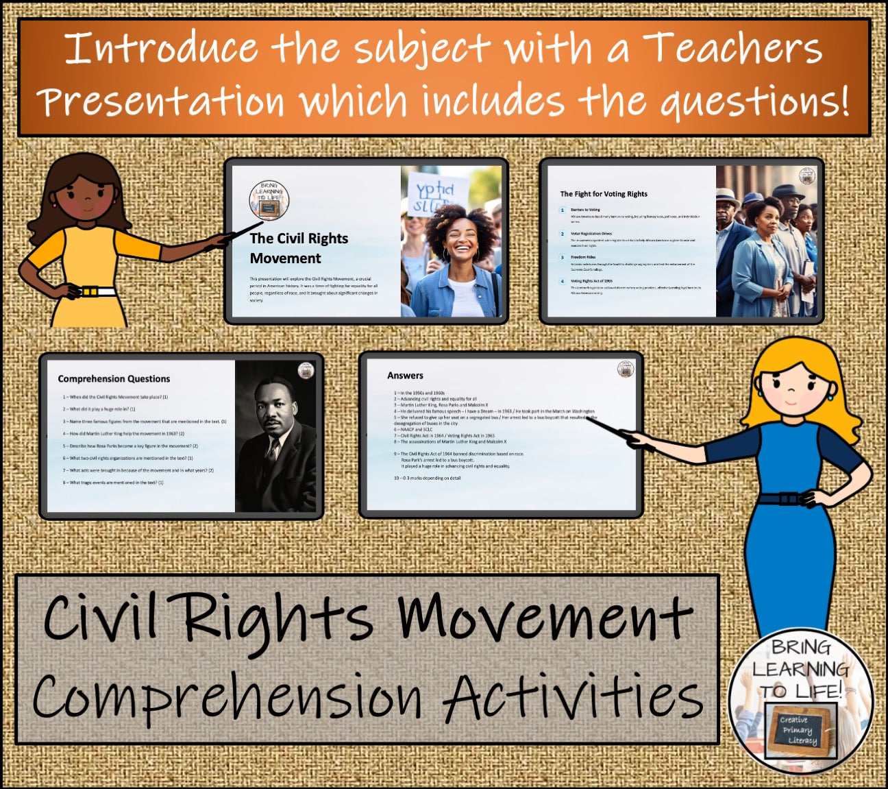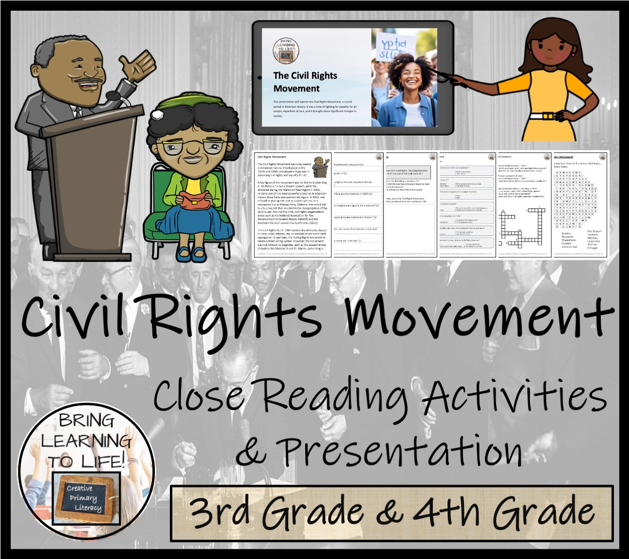 Civil Rights Movement Close Reading Comprehension Activities | 3rd & 4th Grade
