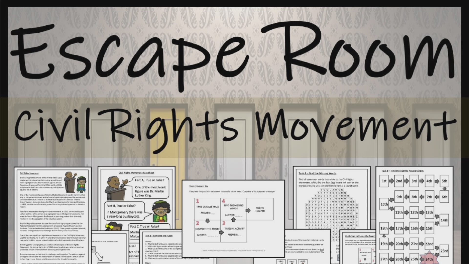 A Civil Rights Movement Escape Room activity. Ideal for fifth grade or sixth grade, the activity is perfect for group work, starting a new topic, Black History Month, team-building activities or for a fun, engaging and interactive lesson. The activity can be used in English class as it incorporates some ELA skills or in Social Studies.