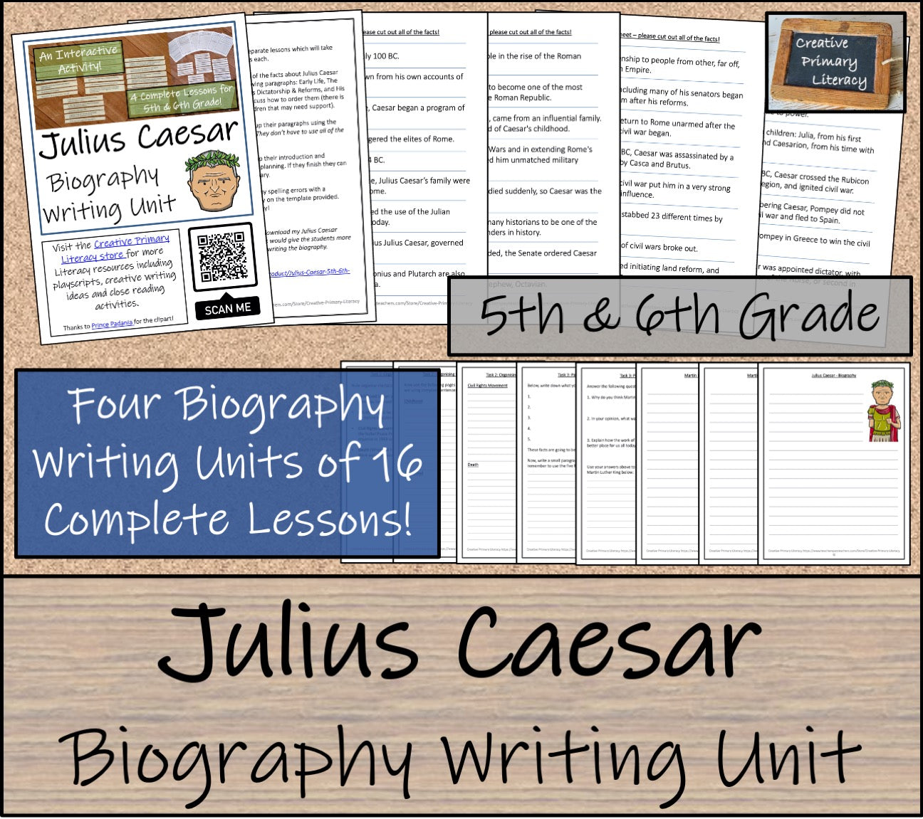 Then, there are four biography writing units about Julius Caesar, Cleopatra, Hannibal and Spartacus. The units have been split into four separate lessons which will take students approximately 40-50 minutes each.