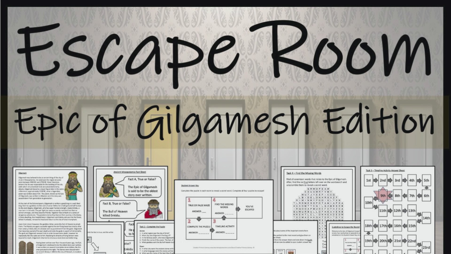 An Epic of Gilgamesh and Ancient Mesopotamia Escape Room activity. Ideal for fifth grade or sixth grade, the activity is perfect for group work, starting a new ancient history topic, team-building activities or for a fun, engaging and interactive lesson. The activity can be used in English class as it incorporates some ELA skills or in Social Studies.
