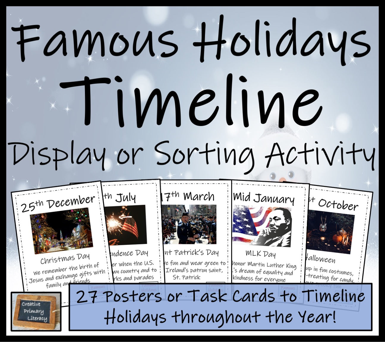 The posters look great as a display in the classroom and the cards are a brilliant holiday activity. The displays and cards come both with dates and without dates, so the students can research the dates online before sorting the timeline. The cards look even better when laminated.