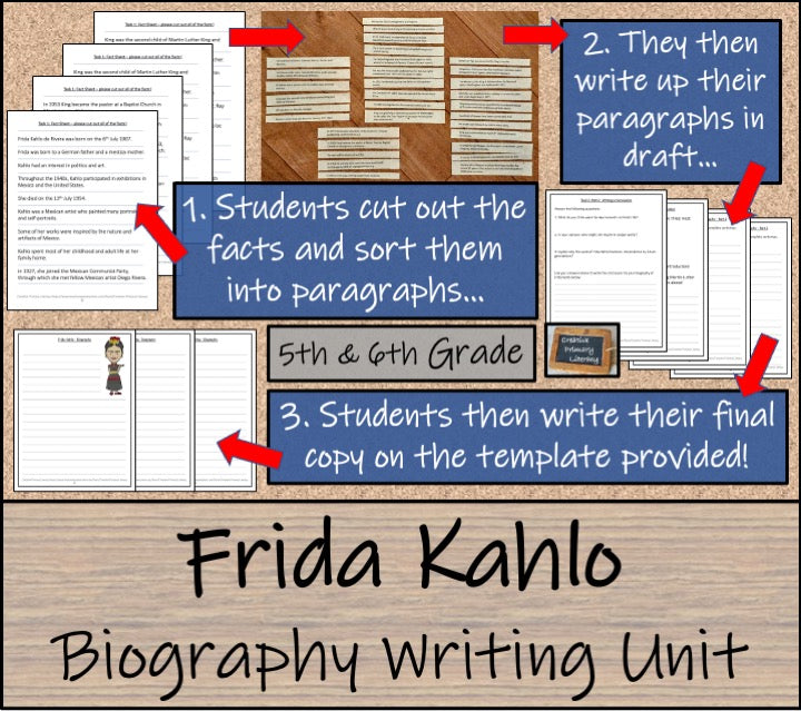A biography writing unit about the famous Mexican artist, Frida Kahlo. The NO PREP unit has been split into four separate lessons and is perfect for students in fifth grade or sixth grade.