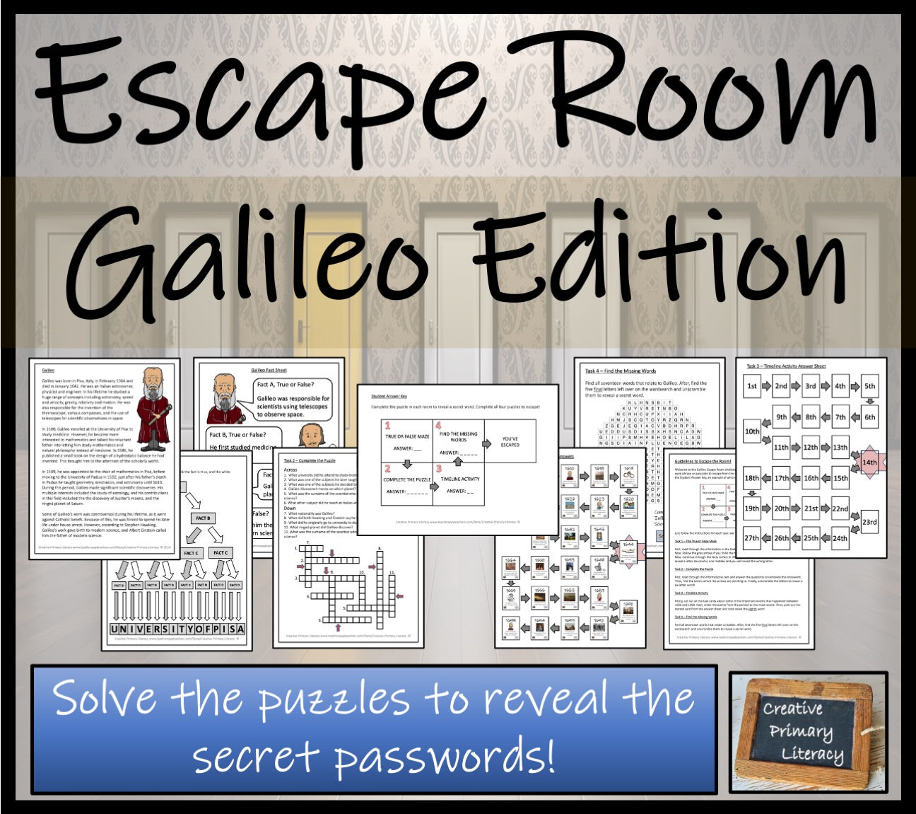 A Galileo Escape Room activity. Ideal for fifth grade or sixth grade, the activity is perfect for group work, a science project, team-building activities or for a fun, engaging and interactive lesson. The activity can be used in English class as it incorporates some ELA skills or in Social Studies.