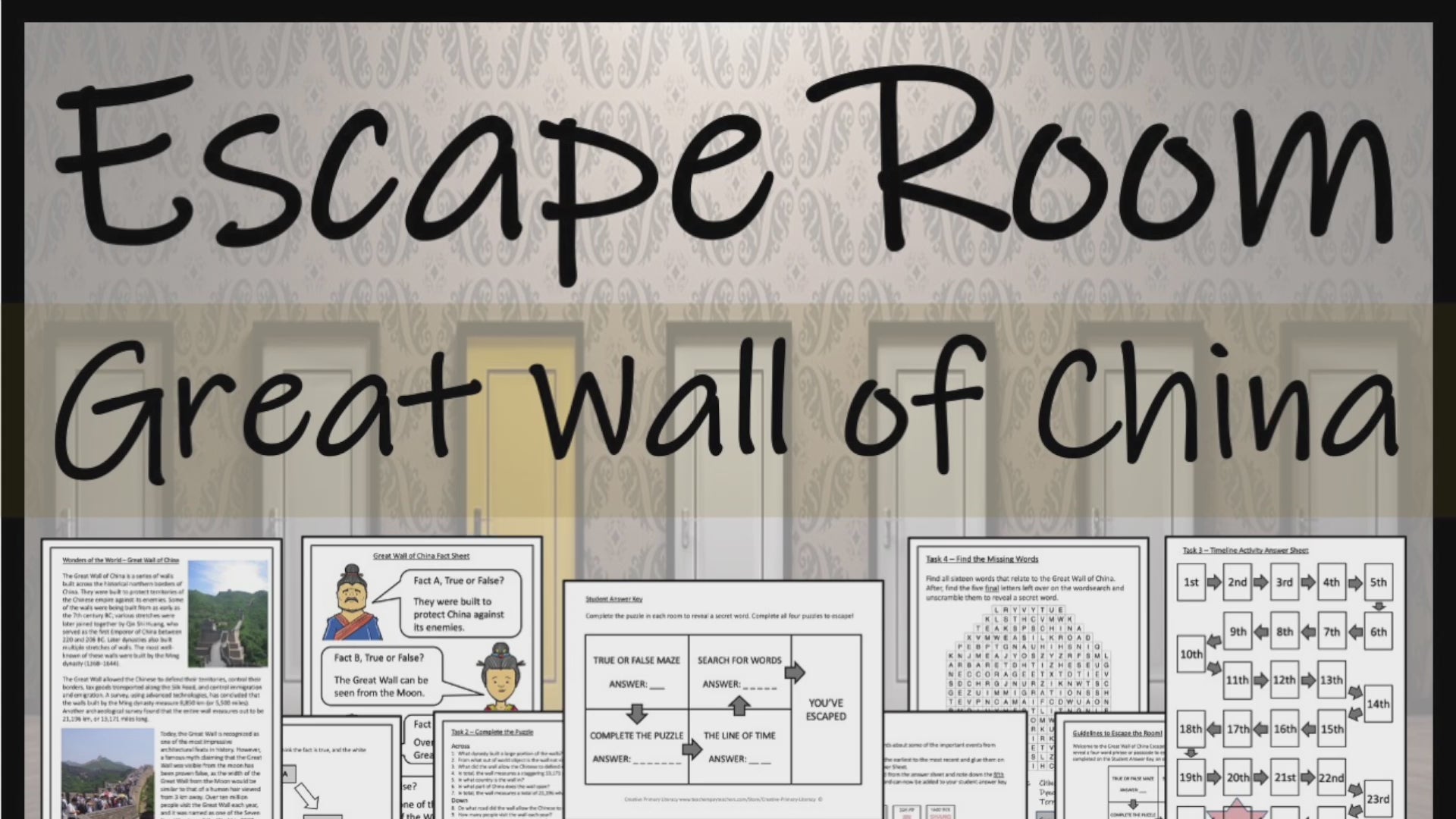 An Ancient China Escape Room activity about the Great Wall of China. Ideal for fifth grade or sixth grade, the activity is perfect for group work, starting a new ancient history topic, team-building activities or for a fun, engaging and interactive lesson. The activity can be used in English class as it incorporates some ELA skills or in Social Studies.