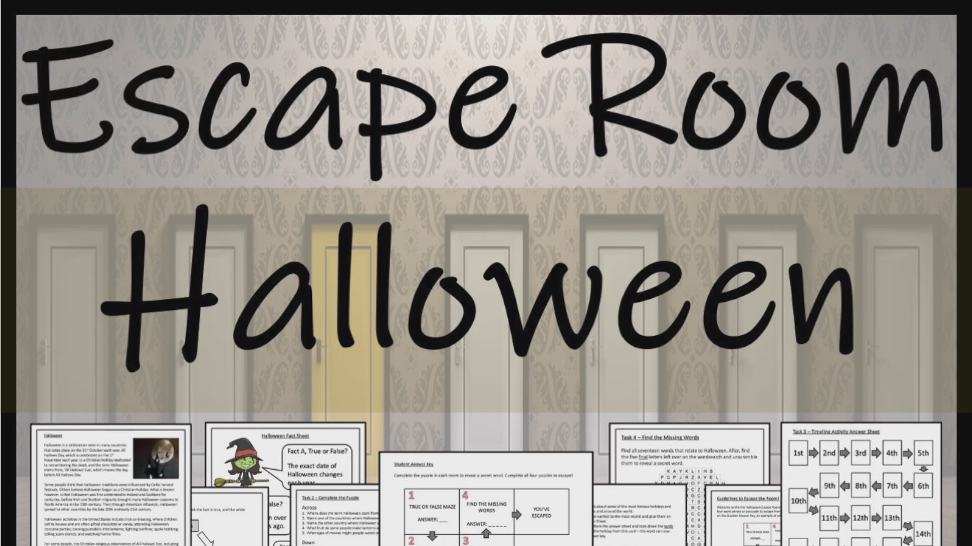 A Halloween Escape Room activity. Ideal for fifth grade or sixth grade, the activity is perfect for group work; a great holiday activity; team-building activities; or for a fun, engaging and interactive lesson. The activity can be used in English class as it incorporates some ELA skills or in Social Studies.