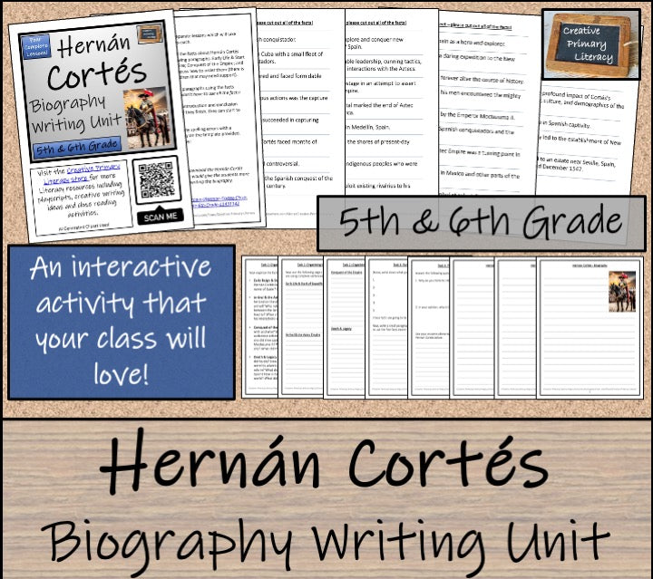A biography writing unit about the life of the famous Spanish conquistador and explorer, Hernán Cortés. The NO PREP unit has been split into four separate lessons and is perfect for students in fifth grade or sixth grade.